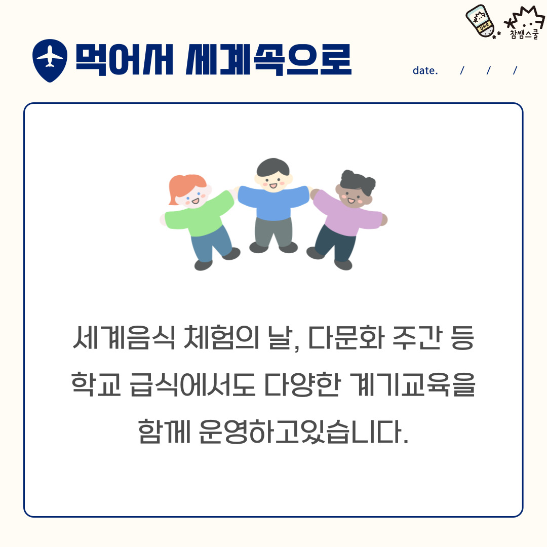 💡세계음식 체험의 날, 다문화 주간을 통해 다양한 세계음식을 접할 때