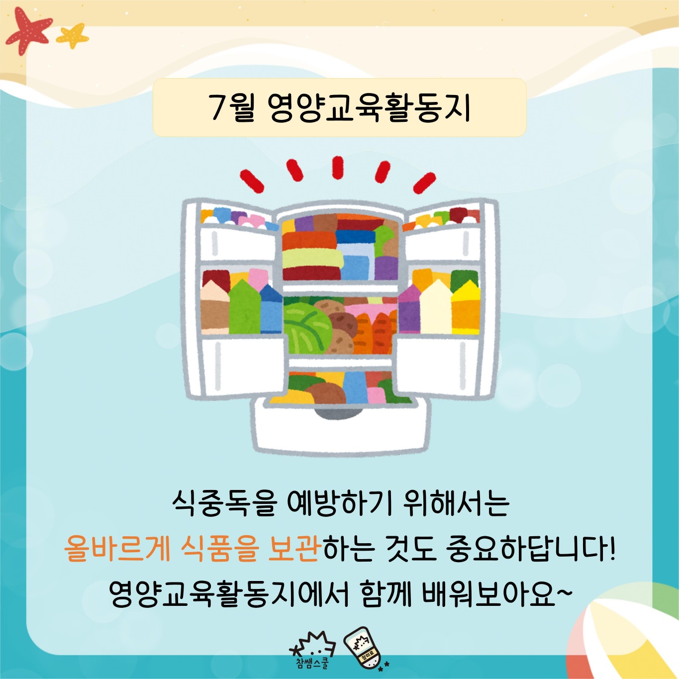 7월의 영양교육활동지는 올바른 식품보관 활동지!