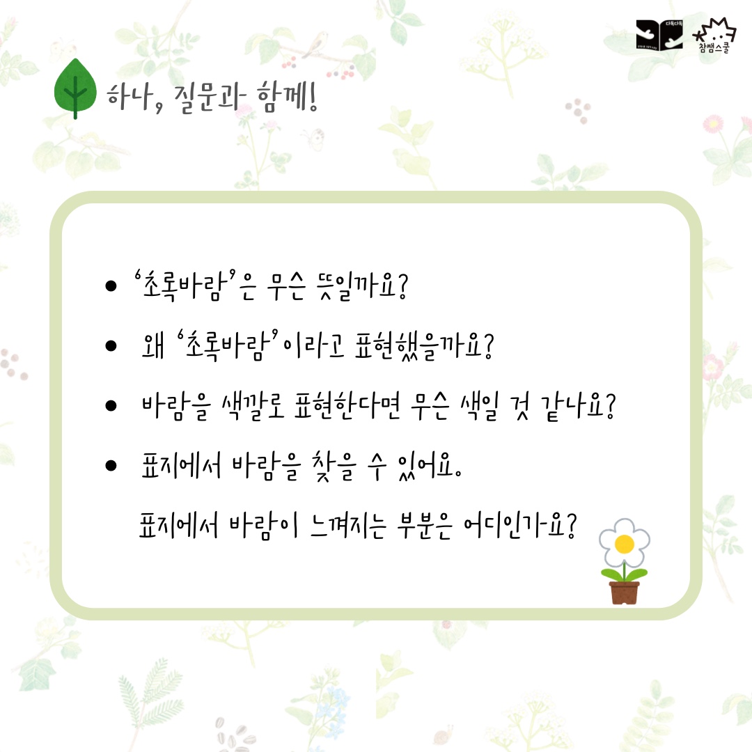왜 바람을 초록색이라고 했을지 이야기를 나누며