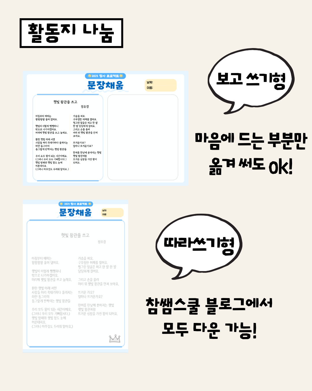 5배로 돌아온 필사 활동지 <문장채움>