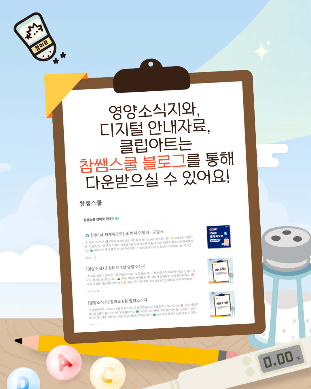 *영양소식지와 디지털 안내자료는 참쌤스쿨 블로그에서 다운 받으실 수 있어요.