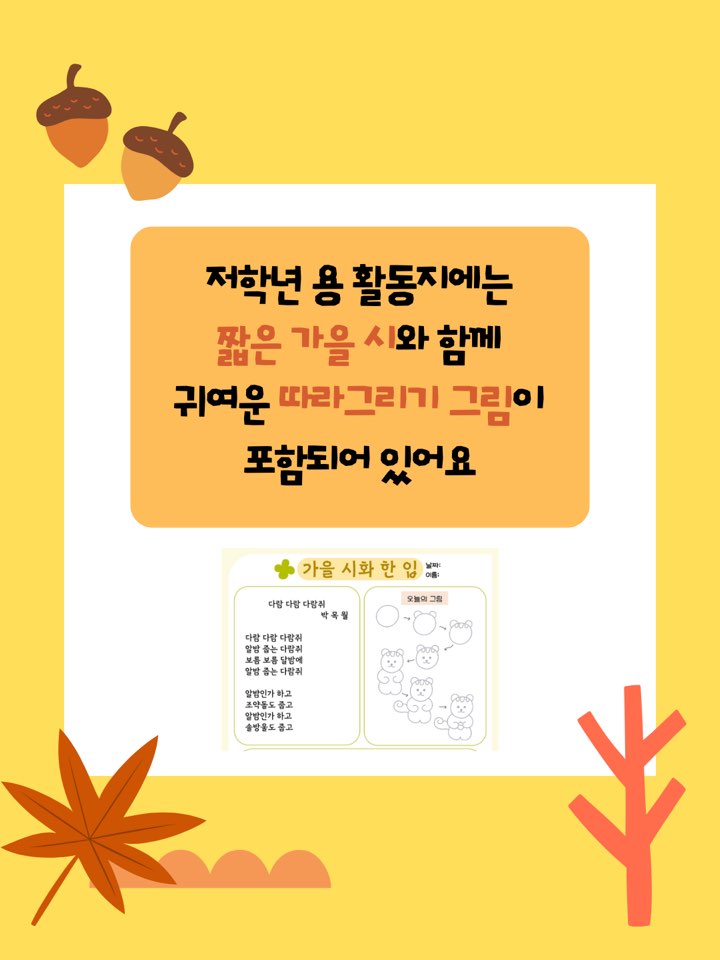 ✔️짧은 가을 시와 귀여운 따라그리기 그림이 포함된 저학년 활동지