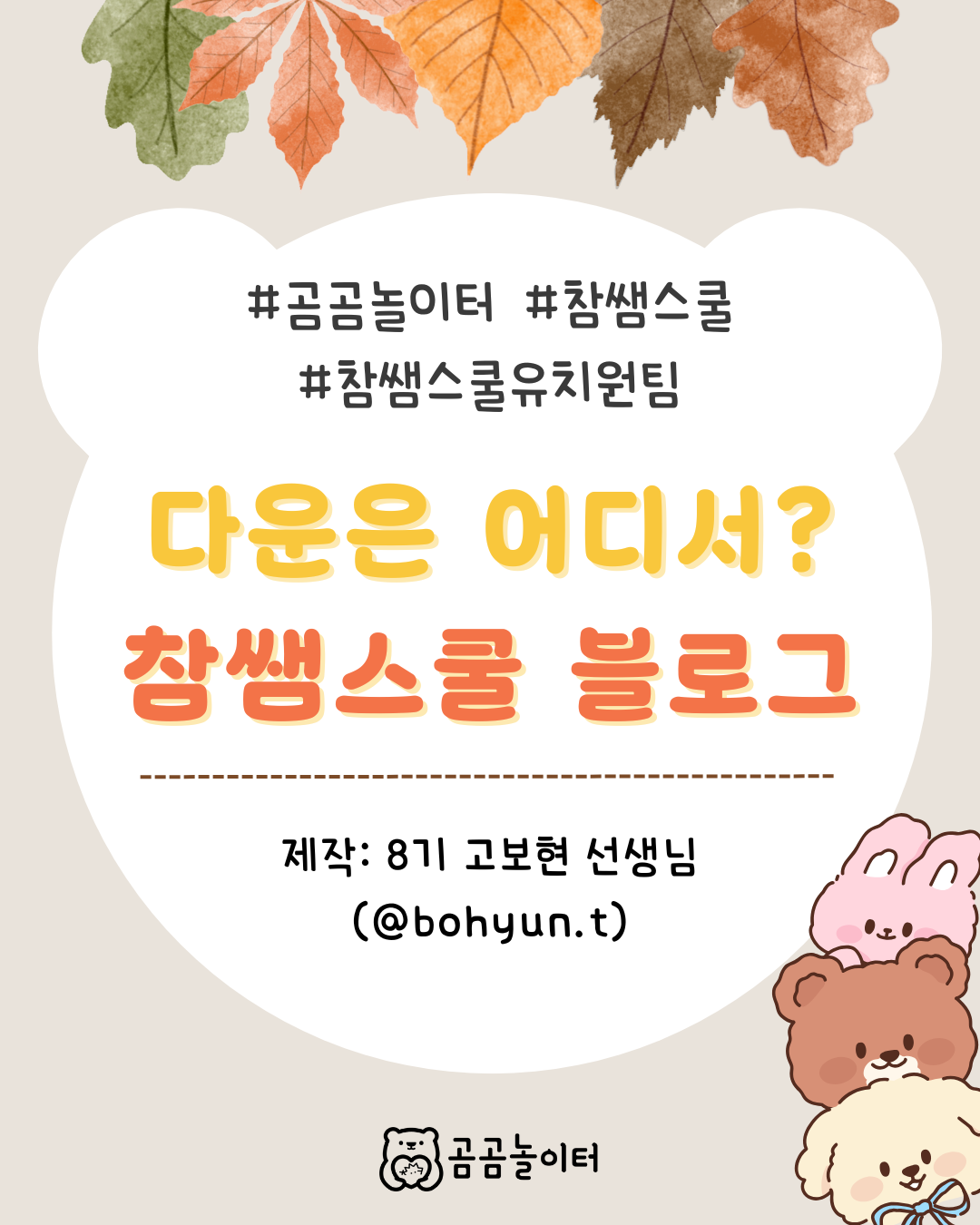 | [곰곰놀이터 X 아이스크림연수원] 가을 팔찌 만들기 (0) | 2025.10.15 |