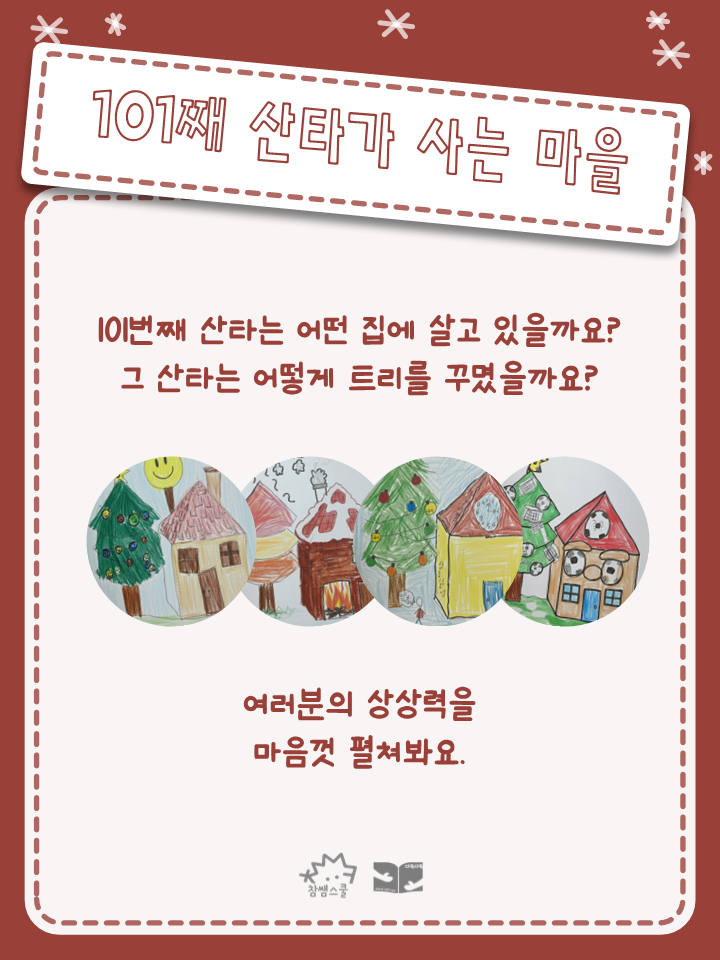 아이들과 함께 산타 마을을 구경하고 나만의 특별한 산타 마을을를 그려보는 시간! 다가올 크리스마스를 더욱 따뜻하게 기다려봐요!